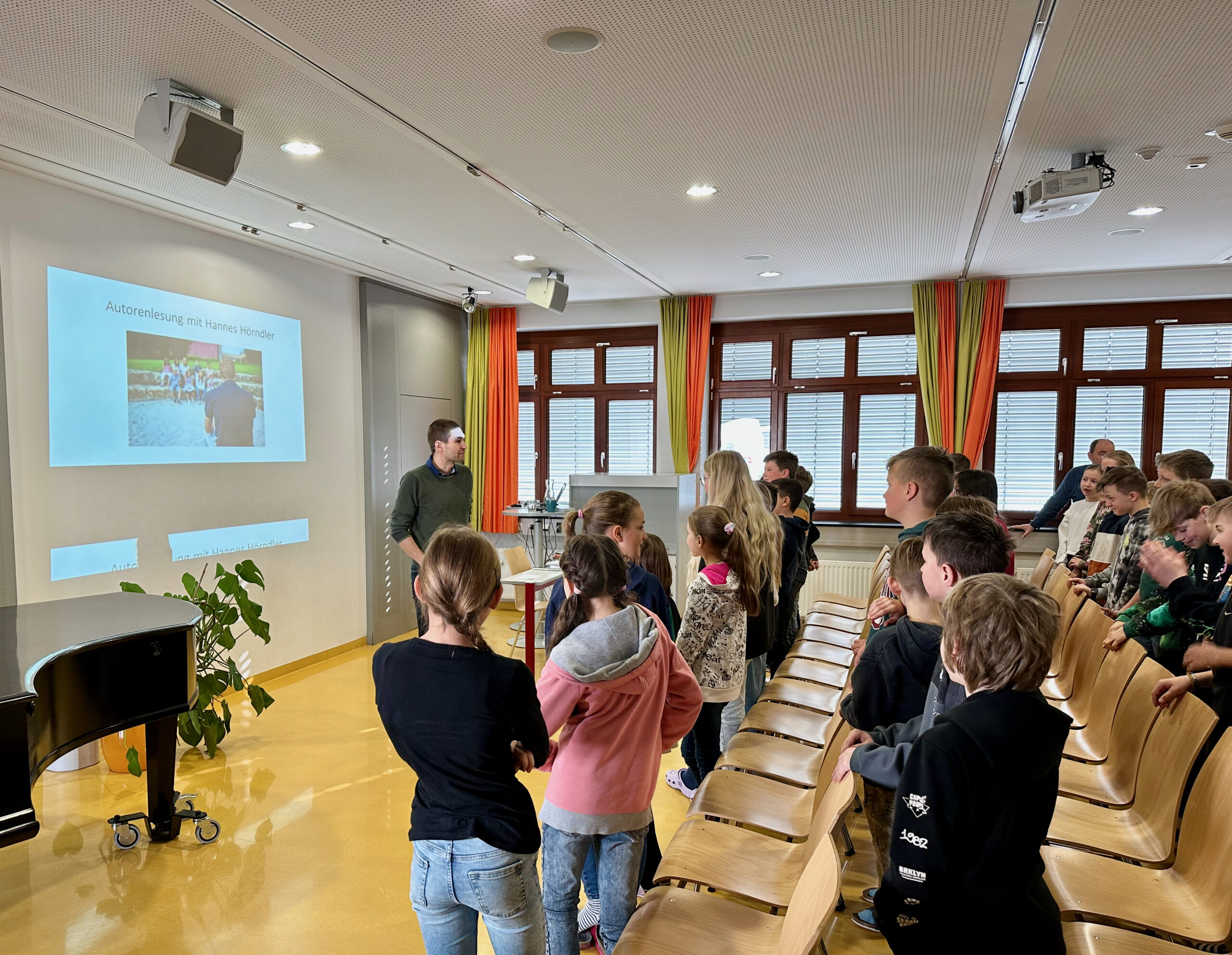 Vergangenen Donnerstag besuchte uns Hannes Hörndler an der Schule. Vielen SchülerInnen war der Name bereits im Vorfeld ein Begriff, da sein spannendes Buch „Die dunklen Bücher – Meine unheimlichen Nachbarn“ als Klassenlektüre in der Bücherei zu finden ist.